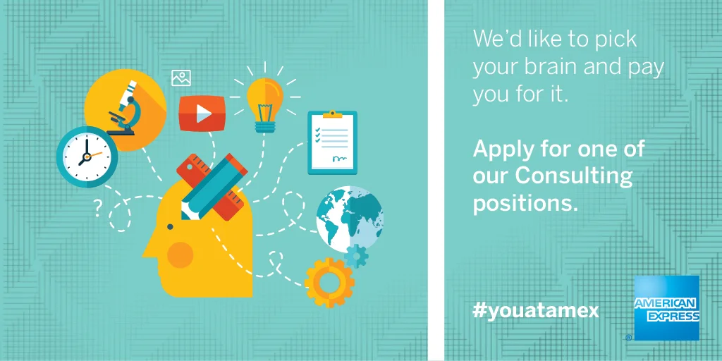 To promote American Express job openings and encourage applicants, we created social tiles on Twitter (now X) that linked directly to the Amex career site. The hashtag #youatamex helped enhance visibility and engagement.
